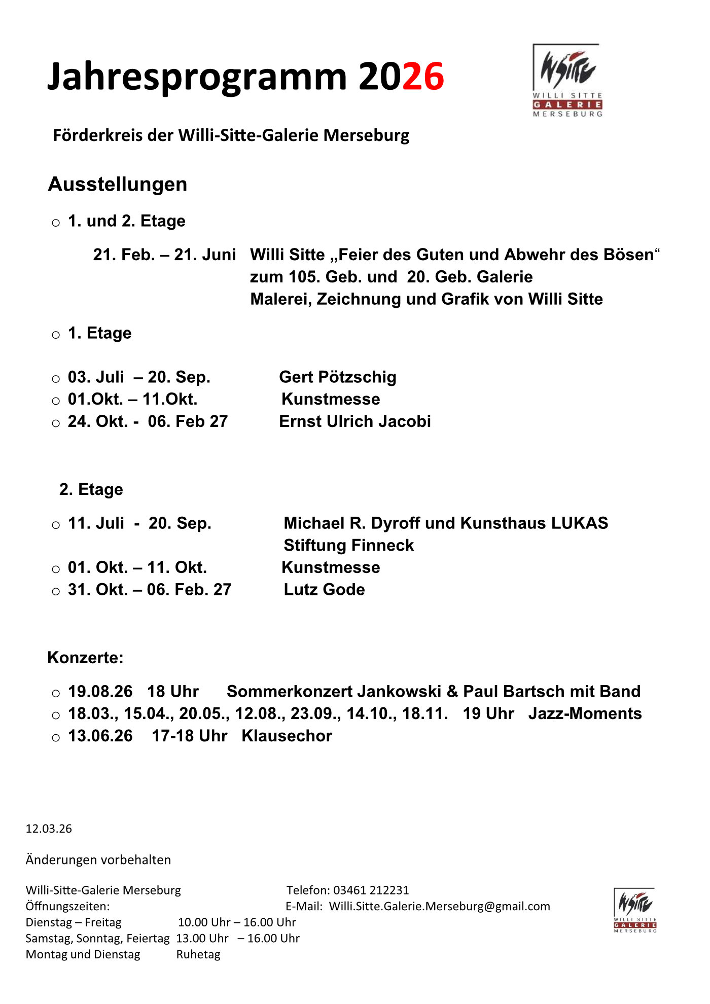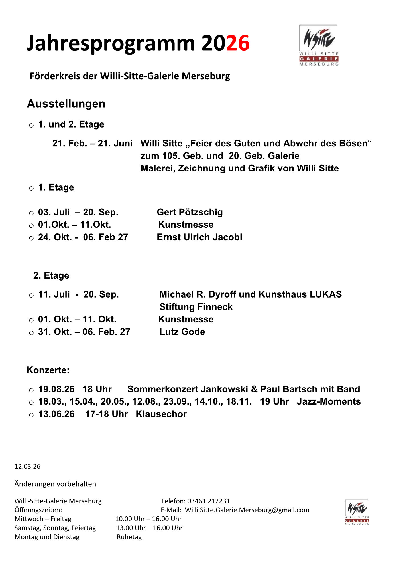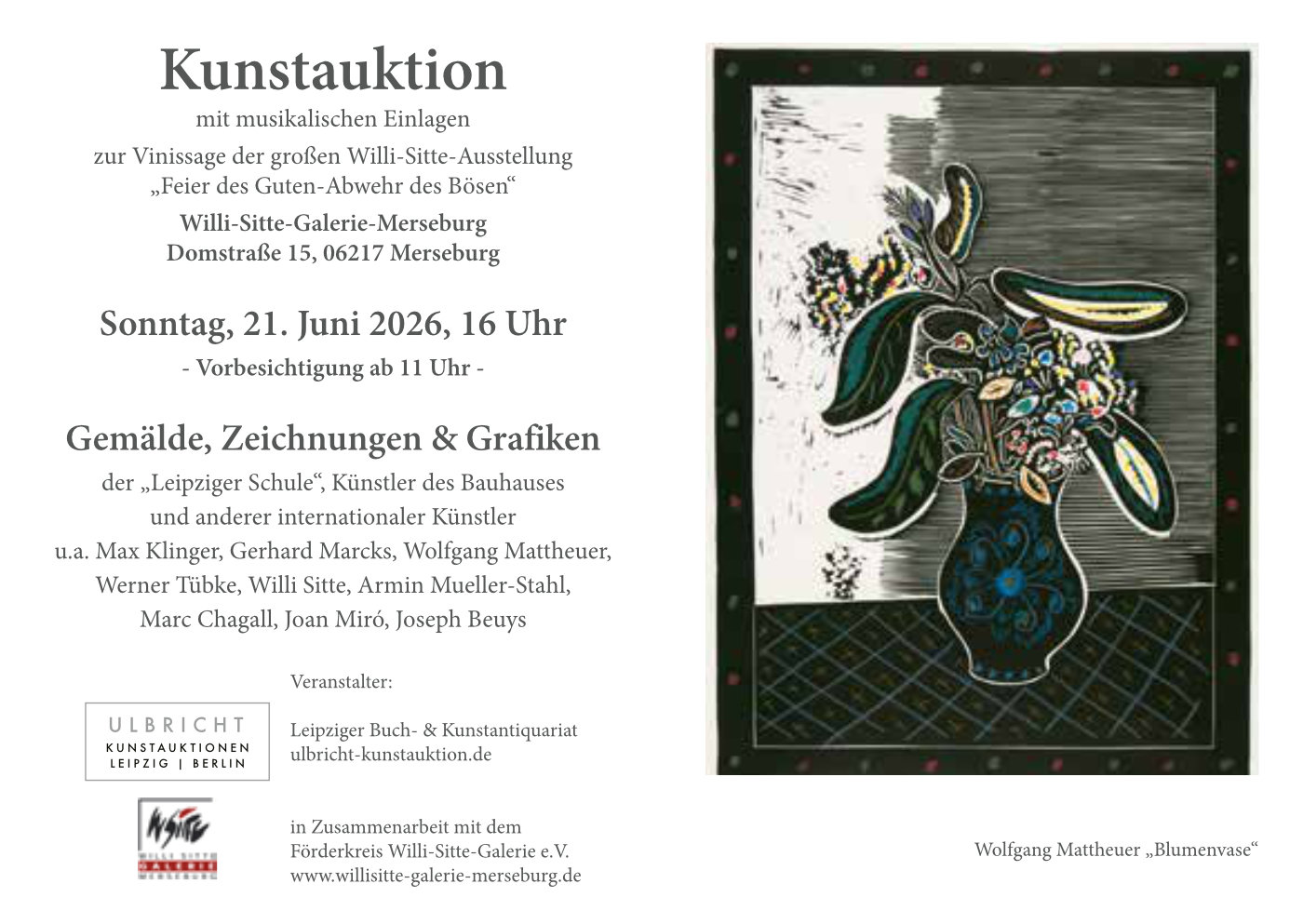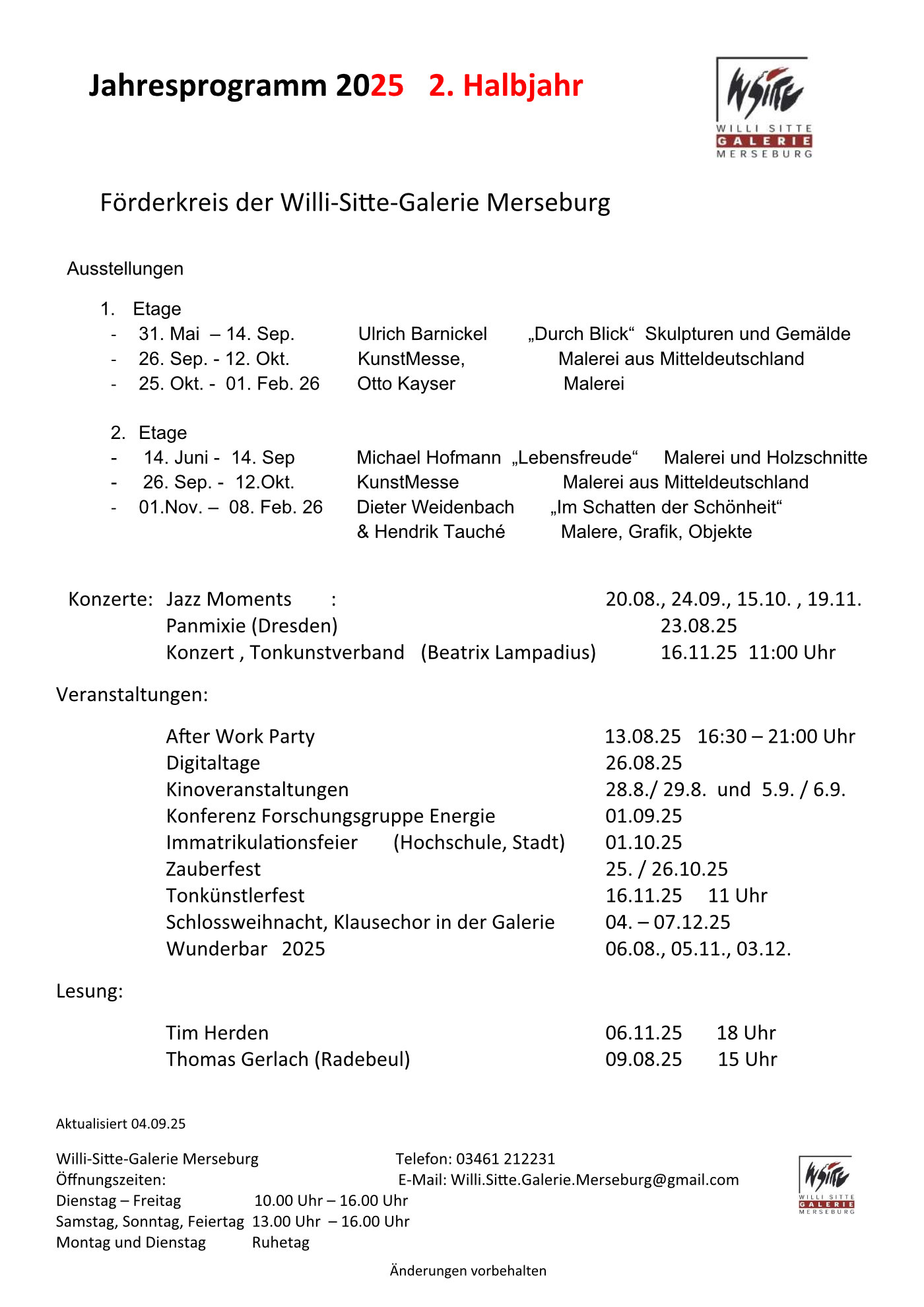 Mit der Willi – Sitte – Galerie wurde ein Ausstellungsort geschaffen, der die Begegnung mit Werken der Bildenden Kunst in der Dom- und Hochschulstadt möglich macht.